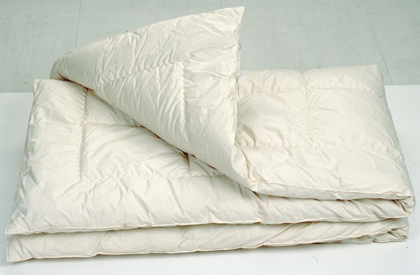 Bei dieser Steppdecke wird die Schafwolle zusammen mit dem Baumwollbezug durchgehend versteppt.