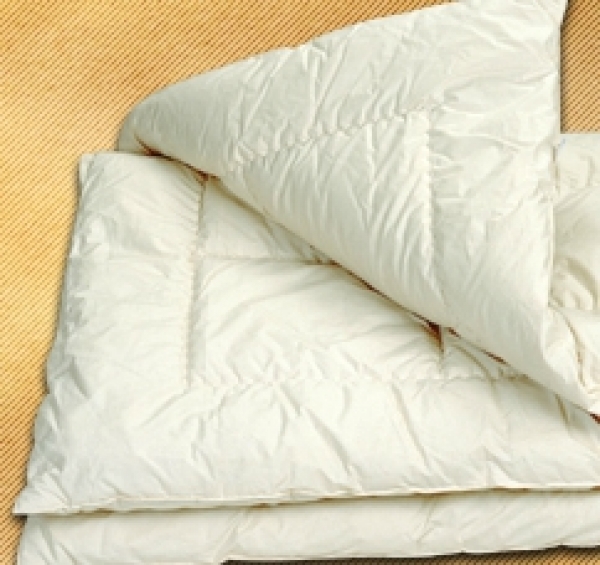 Bei dieser Steppdecke wird die Schafwolle zusammen mit dem Baumwoll-Bezug durchgehend versteppt.