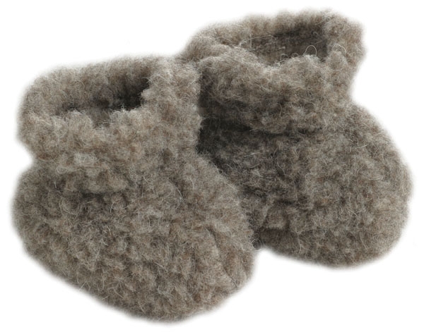Unsere Babyschuhe werden in liebevoller Handarbeit aus Wollflor gearbeitet und halten die Füße Ihres kleinen Lieblings angenehm warm.